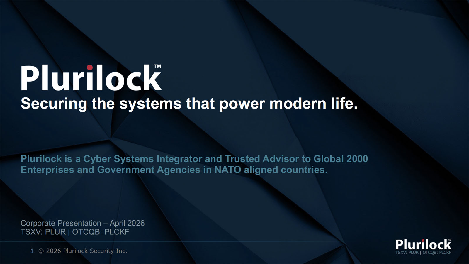 Vancouver, British Columbia — April 22, 2026 — Plurilock Security Inc. (TSXV: PLUR) (OTCQB: PLCKF) (“Plurilock” or the “Company”), a global cybersecurity services and solutions